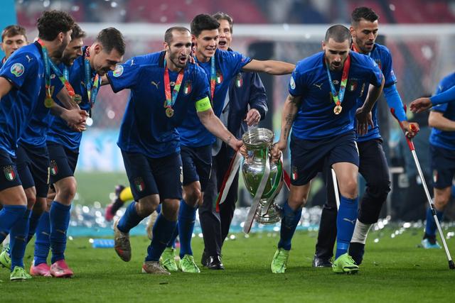 本届欧洲杯,蓝衣军团在曼奇尼的带领下,一路高歌猛进,7连胜杀进决赛,最终决赛点球3:2战胜三狮军团英格兰,时隔53年,夺得队史第2次欧洲杯冠军,可谓苦尽甘来。