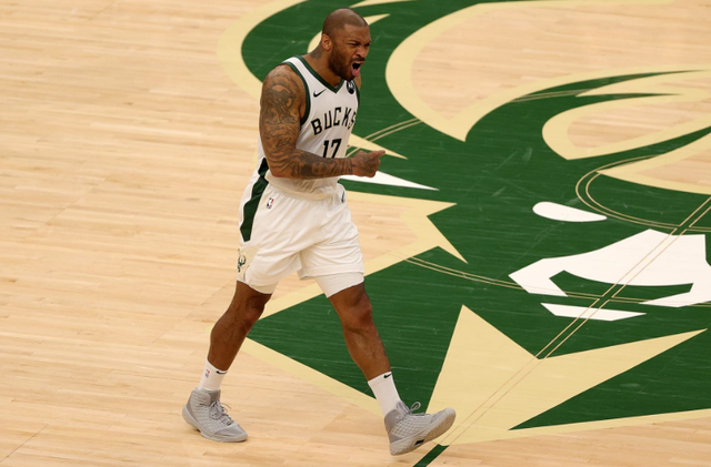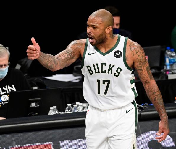 从雄鹿进入季后赛开始,队内真正的大佬是谁?不是字母哥、不是米德尔顿也不是霍勒迪……而是空降密尔沃基的鞋王,PJ塔克。