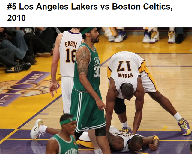 其中科比与绿军三巨头对决的黄绿大战上榜,2013年的热火排名第三,榜首则毫无悬念。