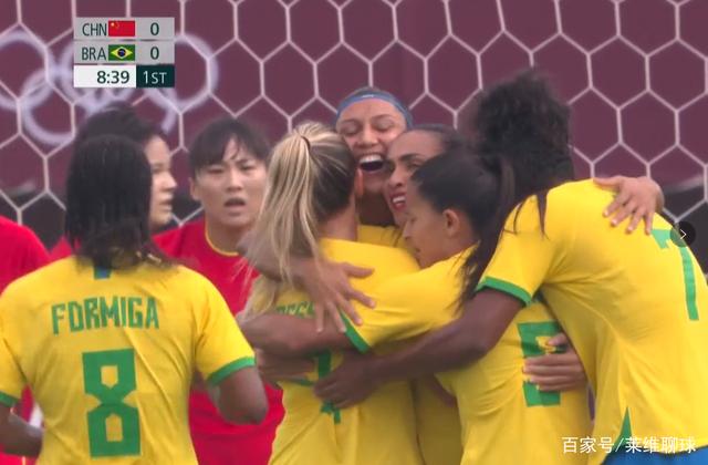 可是开场中国女足迅速被对方的反击冲垮,开场8分钟女足就丢球了,4号李晴潼带球直接被巴西球员比亚特里斯撞飞。当时巴西第1次攻门被横梁挡住,但是35岁的老将玛塔拍马赶到完成一次补射,爆射命中,女足8分钟先是0:1落后。