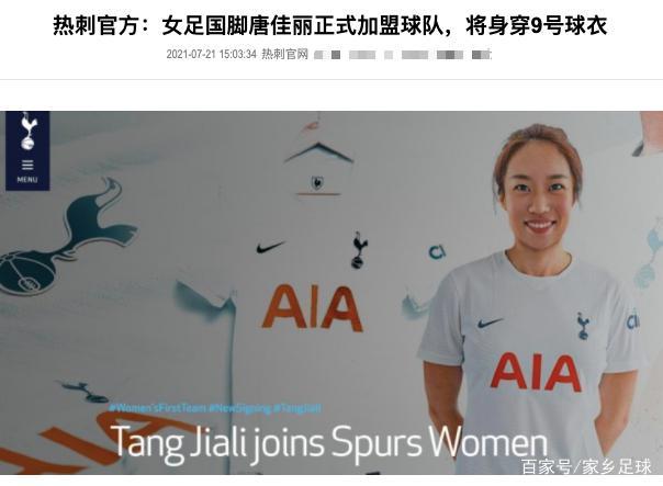 北京时间7月21日下午2:30,中国足球宣布了一则非常重要的消息,中国女足国脚,金球奖巨星唐佳丽正式确定加盟英超托特纳姆热刺队,双方完成签约,唐佳丽将为球队至少上了一年的时间。热刺已经宣布,唐佳丽将会身穿9号球衣出战。