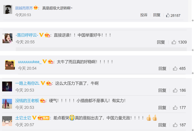有网友感叹“真是超级大逆转啊”“太牛了”“硬气”“有实力”↓