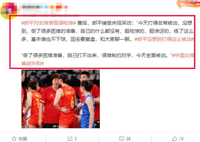 更加可怕的是,赛后在接受采访时,郎平也表示:“今天打得非常被动,没想到,做了很多困难的准备,自己的什么都没有,挺吃惊的,挺惊讶的,练了这么多,基本谁也不下球,回去要复盘,和大家聊一聊。”也就是说,强如郎平,也不知道出现了什么问题,也不知道为何会这样,还需要复盘才行。