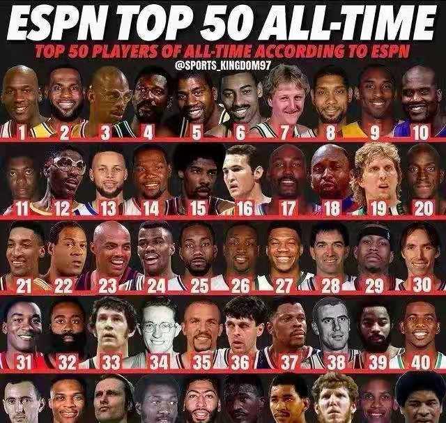 一般来说进入休赛期之后,各大媒体都会通过这个赛季球员们的表现去重排历史五十大或者百大球星榜单,这不近日美媒又重排了历史前50大球星,具体是怎么排的?我们一起来看一下。