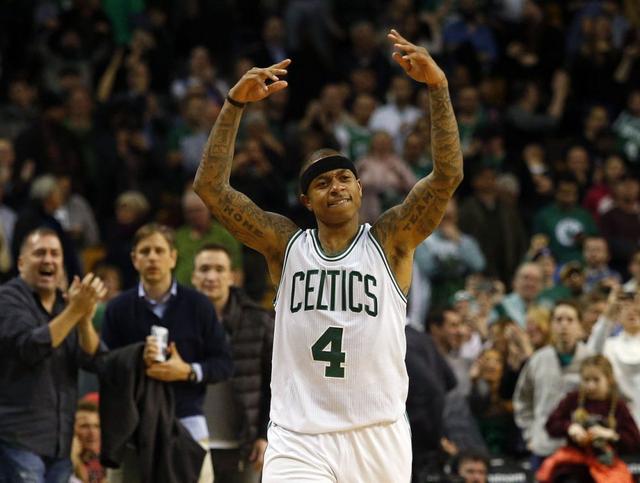 14-15赛季后半段从太阳来到了凯尔特人,虽然小托马斯常规赛仅仅打了21场比赛,但是绿军还是进入了季后赛的!不幸运的是那一年刚好是詹姆斯从热火回到骑士,骑士夺得状元签用维金斯交换到乐福和欧文三人组建的骑士三巨头第一年,季后赛首轮凯尔特人就碰到了骑士,朝着总冠军去的骑士显然没有把绿军放在眼里,4-0轻松的横扫了绿军,因此第一年小托马斯根本没有什么收获!