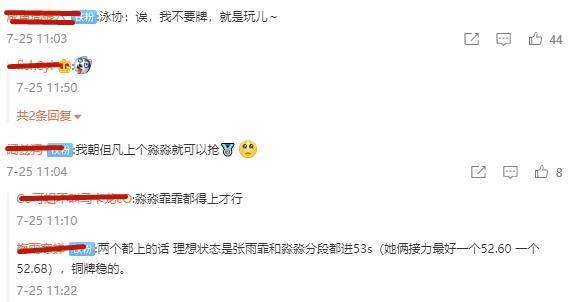 其实,教练组做出这样的选择也很容易理解,张雨霏刚刚参加了女子100米蝶泳半决赛,体能肯定消耗了不少,为了确保张雨霏以最好状态参加之后的单项比赛,肯定要有所取舍。至于杨浚瑄,她没有出场确实比较意外,应该也是为了之后的单项赛,毕竟杨浚瑄在单项赛也具备冲击奖牌的实力。更重要的一点是,中国队要全力冲击混合泳接力。所以,女子自由泳接力看起来就是练兵的态度了。