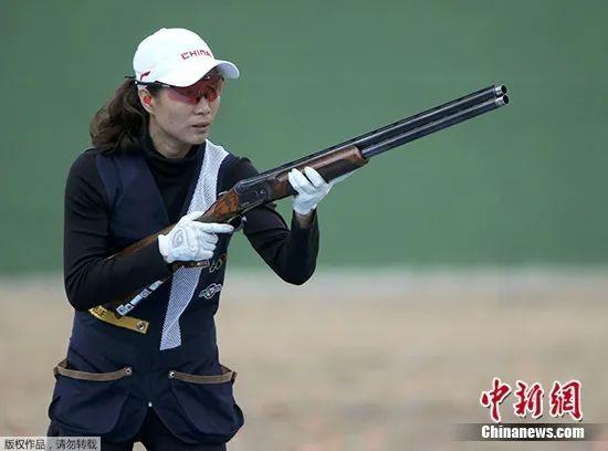 资料图:中国选手魏宁在女子双向飞碟资格赛比赛中。