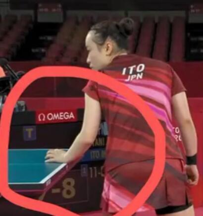 刘诗雯/许昕与伊藤美诚/水谷隼的混双决赛中,伊藤美诚有三次摸球台,而水谷隼也有一次吹球的瞬间,这些都被细心的网友们截屏下来,而中国选手只要摸台就是黄牌,这是何等的双标?难道说东道主就可以无视奥运会规则?