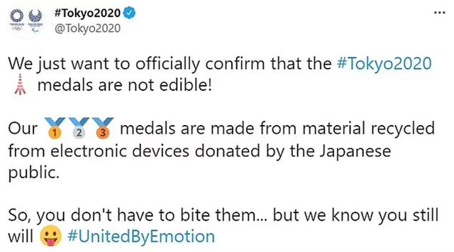 “尝尝胜利的滋味”,在奥运会上不是一句空话,太多运动员赢得奖牌以后欣喜若狂,逮着奖牌就会咬一口。可是,东京奥运会主办方却连发推特喊停。
