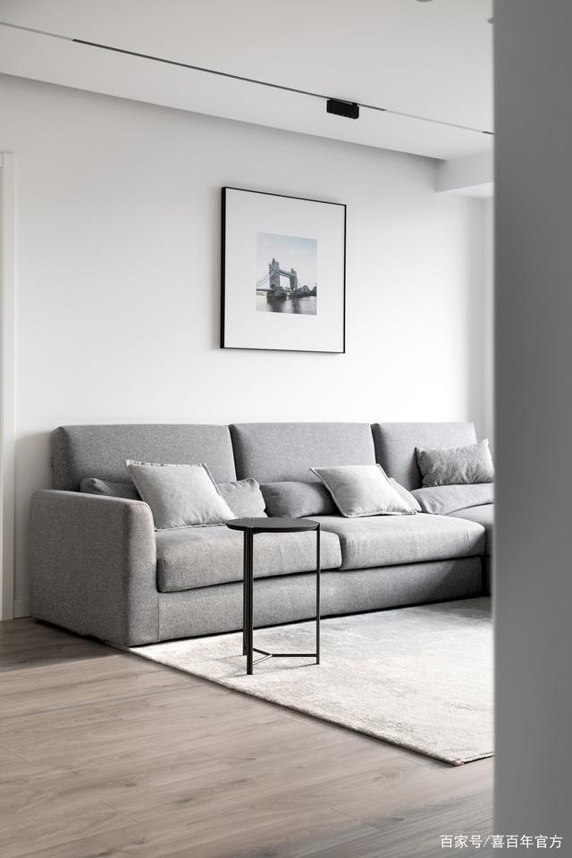 客厅纳入阳台空间更宽敞,因为家里有两个小孩所以客厅不放客厅桌留出空间给两个小孩活动,选用小巧的边桌用来日常使用就足够了,把常用吊灯改成轨道灯和射灯替代,光线柔和充足也不会压层高。