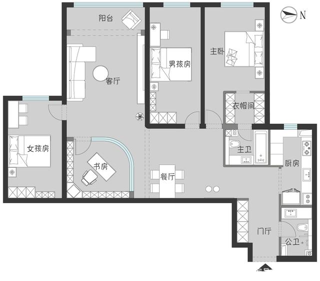1. 户型上增加一个独立的书房和独立的主卫、衣帽间
