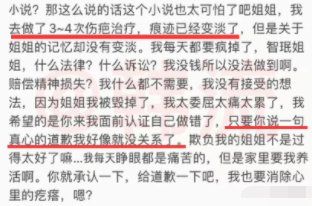 “我只是说了10000000000件事情中的一件,就被姐姐说是“小说”,姐姐不要这样,有证人也有证据,对不起,我没做错什么”。