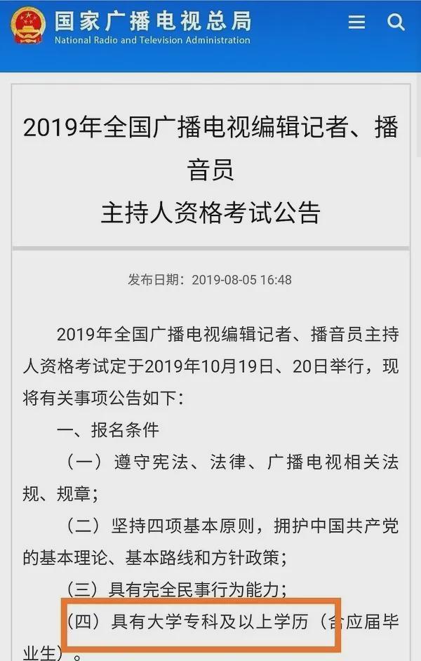很多粉丝们乐观的认为,王一博可以考个证书然后在继续他的主持人之后嘛。但是广电总局的考试公告中明确表示,必须要具备大学专科或以上的学历才可报名,但是从王一博的介绍中发现他的学历是高中,所以他连参加考试的资格都没有,这就相当尴尬了。